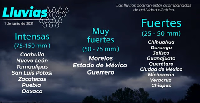 de tormentas eléctricas: Chihuahua, Coahuila, Nuevo León, Tamaulipas, Sinaloa,