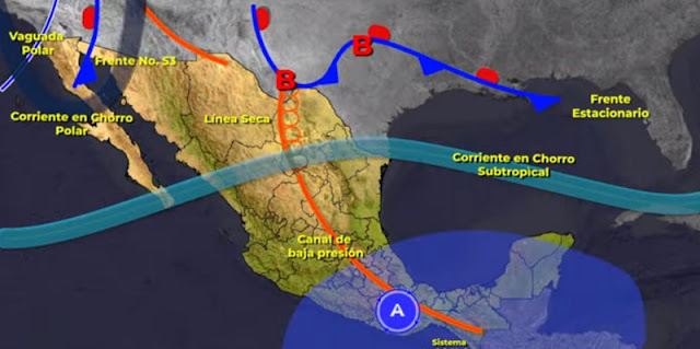 línea seca y un canal de baja presión se extenderán sobre el norte de México,